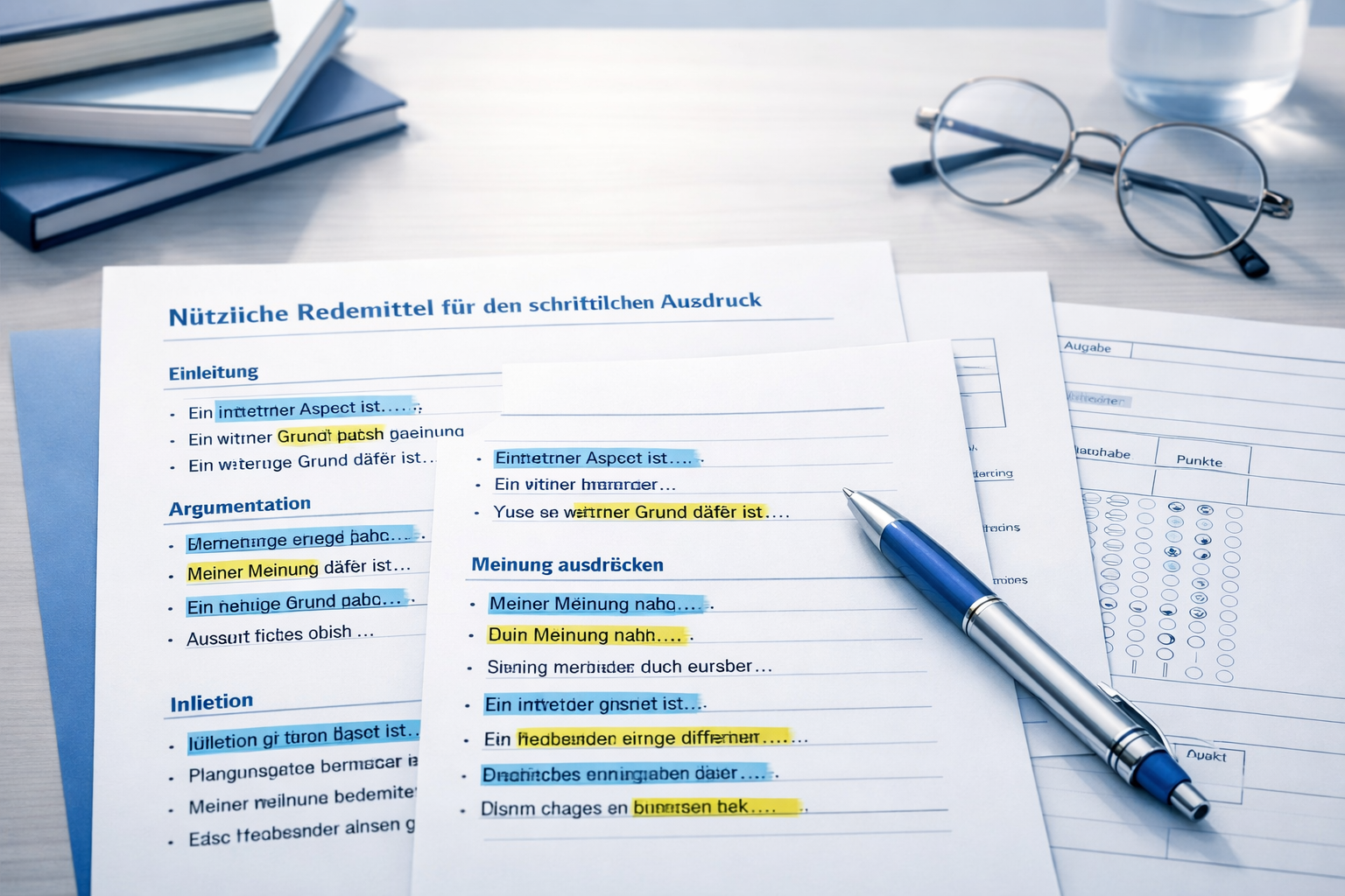 إذا كنت تبحث عن أمثلة رسائل Goethe A1 فأنت لا تحتاج إلى نظرية معقدة. أنت تحتاج إلى نماذج بسيطة ونظيفة تستطيع التدريب عليها مباشرة للامتحان. وهذا بالضبط ما ستجده هنا: 30 مثالًا قصيرًا للرسائل والبريد الإلكتروني، وقوالب جمل ثابتة، ومواضيع شائعة، وأهم الأخطاء التي تجعل المبتدئين يخسرون النقاط.